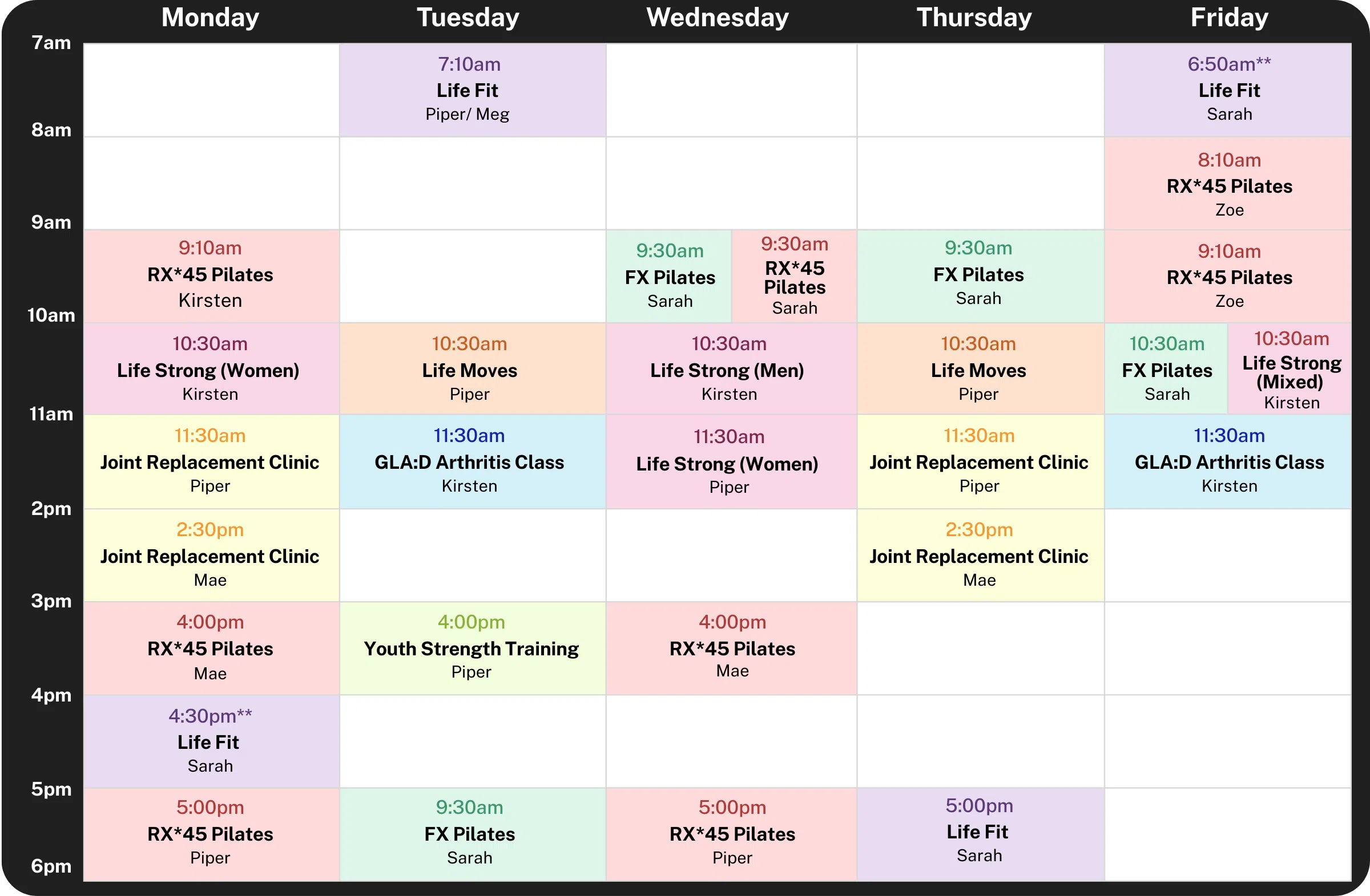 Low intensity balance, mobility and strengthening – Designed for older clients, with light weight and functional exercises for those with balance issues to improve mobility and reduce the risk of falls.